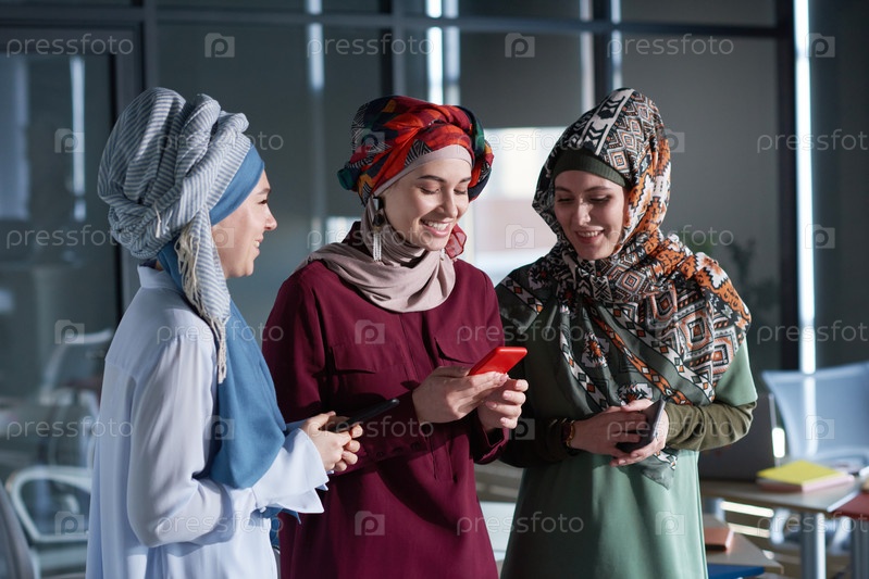 Мусульманские бизнес-женщины с телефонами