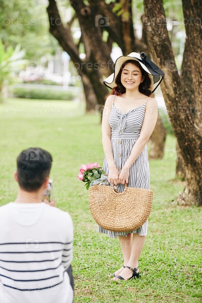 Молодая женщина позирует для фотографии