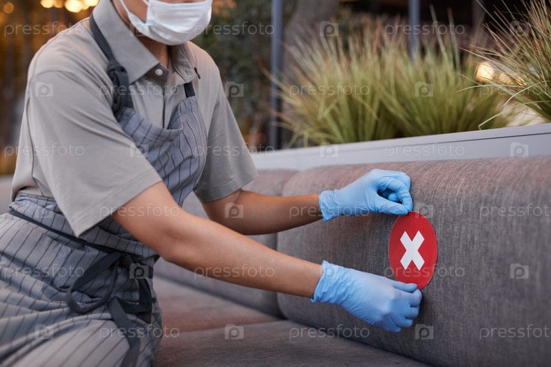 Наклейка социального дистанцирования в кафе Close Up