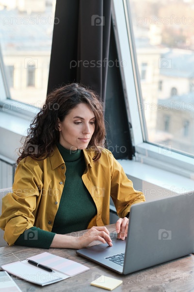 Деловая женщина, использующая ноутбук на работе