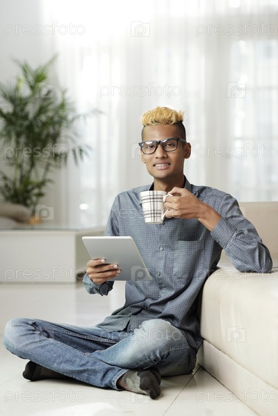 Человек, отдыхающий на полу дома
