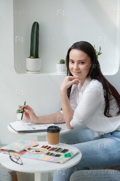 Улыбающаяся женщина наслаждается рисунком