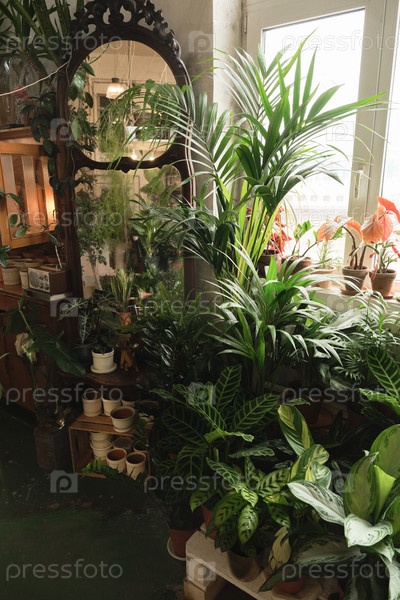 Экзотические зеленые растения в комнате