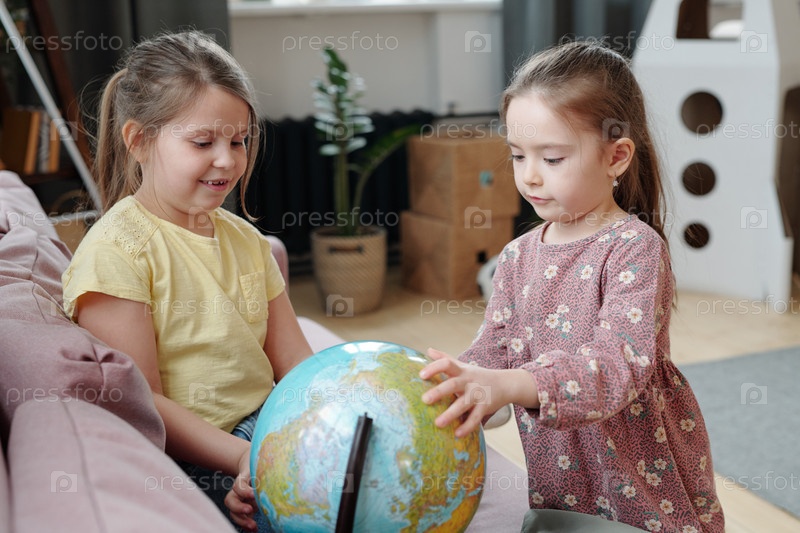 Девушки вместе изучают географию