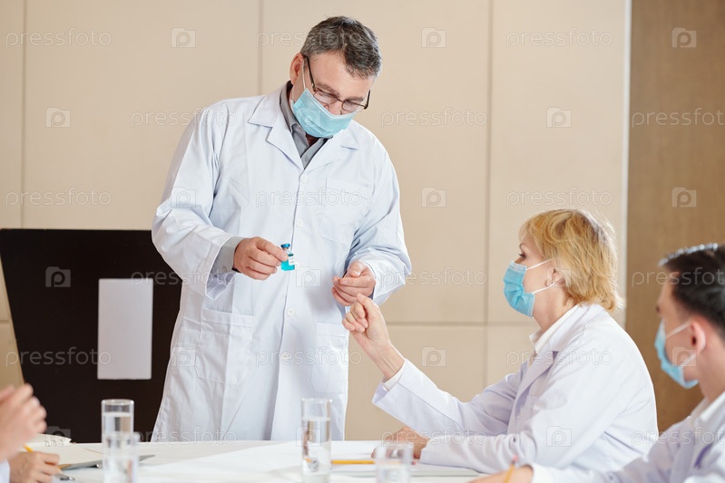 Исследователь показывает новую вакцину