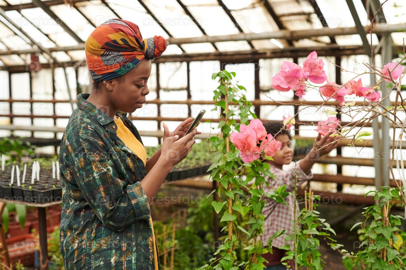 Люди, выращивающие цветы в теплице