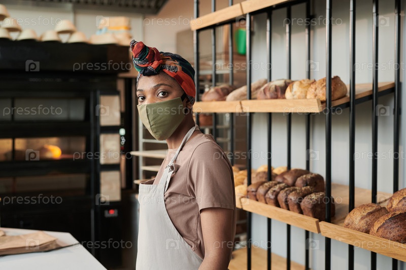 Продавец в маске в пекарне