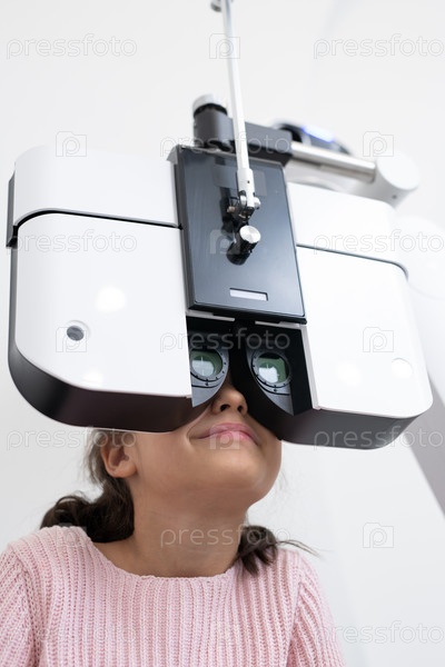 Дети начальной школы проверяют зрение с помощью офтальмологического оборудования