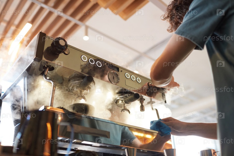Бариста, использующий паровую кофемашину