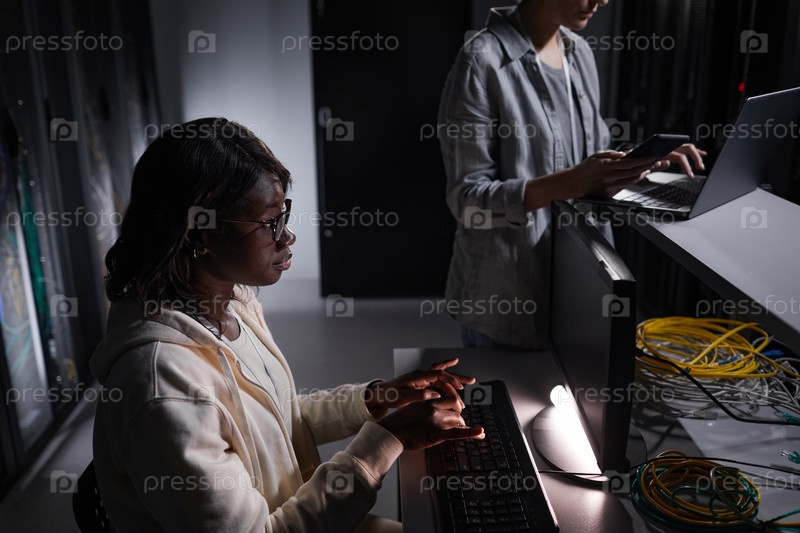 Американский ИТ-инженер в серверной комнате Африканская Америка