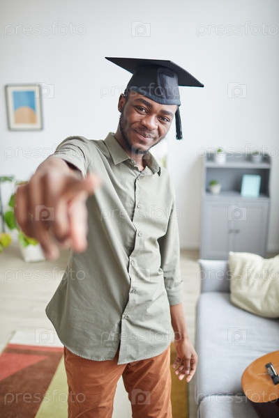 Выпускник колледжа, указывающий на камеру
