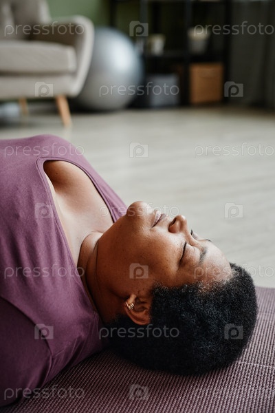 Чёрная старшая женщина наслаждается упражнениями для расслабления