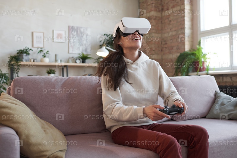 Женщина в очках играет в видеоигры дома