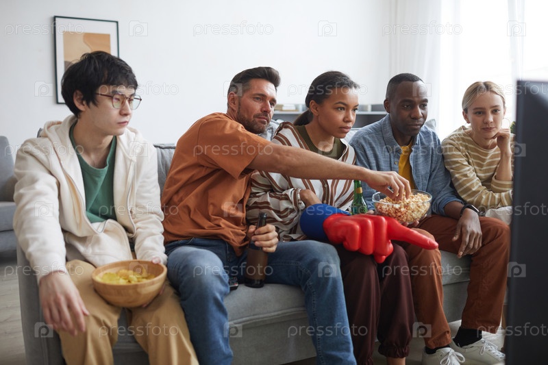 Фанаты смотрят спортивную игру дома