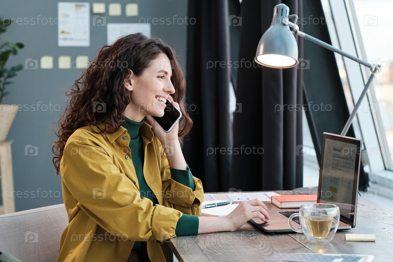 Молодая женщина, работающая дома