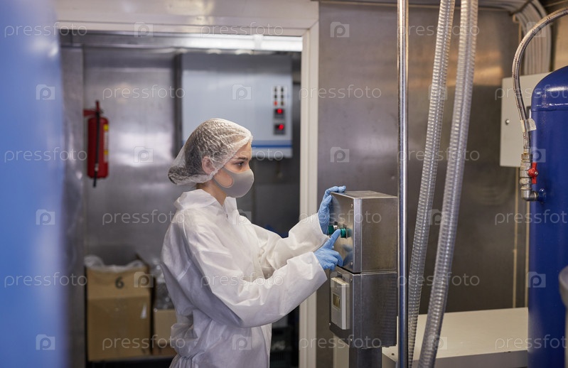 Женщина-фабричный рабочий, работающий с машинами