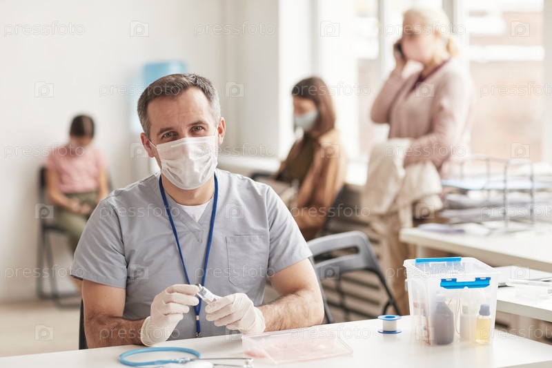 Зрелый врач-мужчина в центре вакцинации