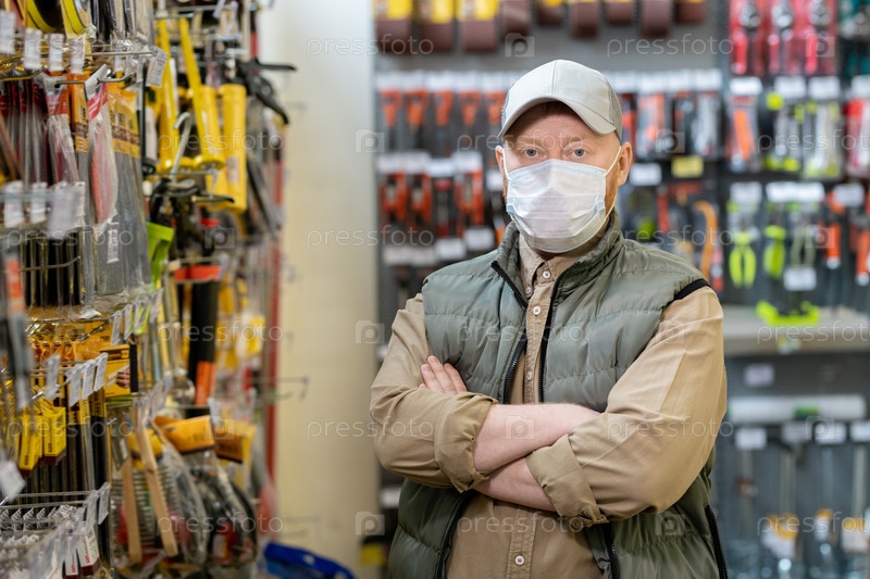 Современный менеджер железнодорожного магазина в защитной маске