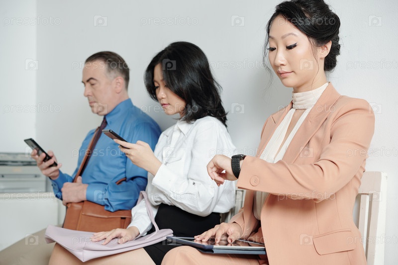 Деловая женщина устала ждать в очереди