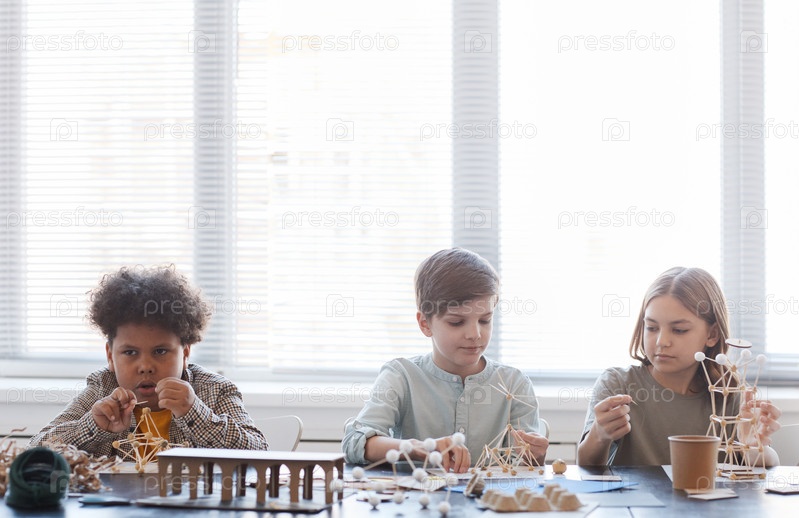 Дети делают модели в классе искусств и ремесел