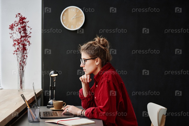 Деловая женщина, работающая на ноутбуке в офисе