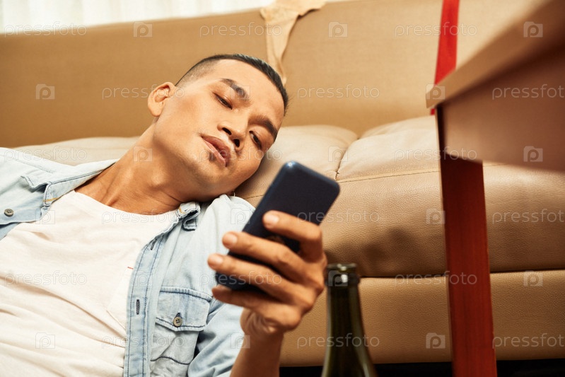 Депрессивный мужчина со смартфоном