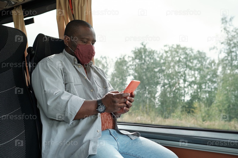 Человек в маске едет на автобусе Черный