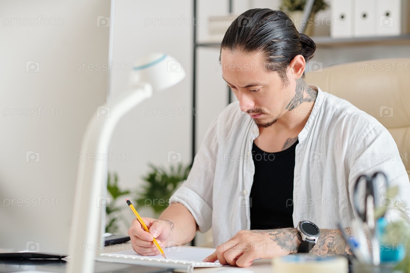 Графический дизайнер рисует эскиз