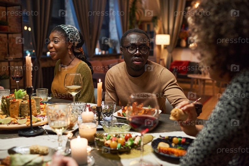 Мужчина ужинает со своими друзьями