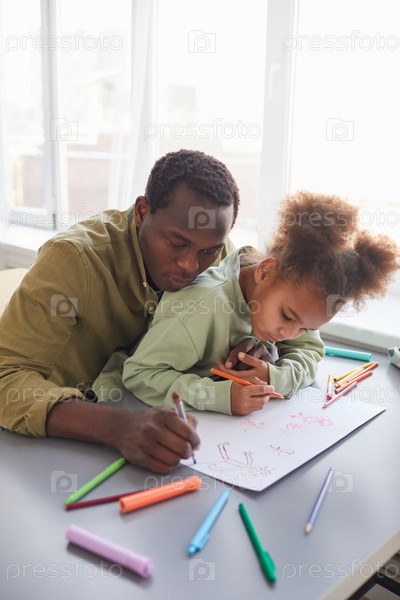 Любящий отец рисует с любящей девочкой