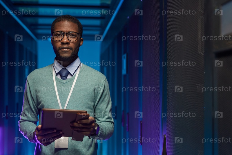 Портрет афроамериканского сетевого инженера