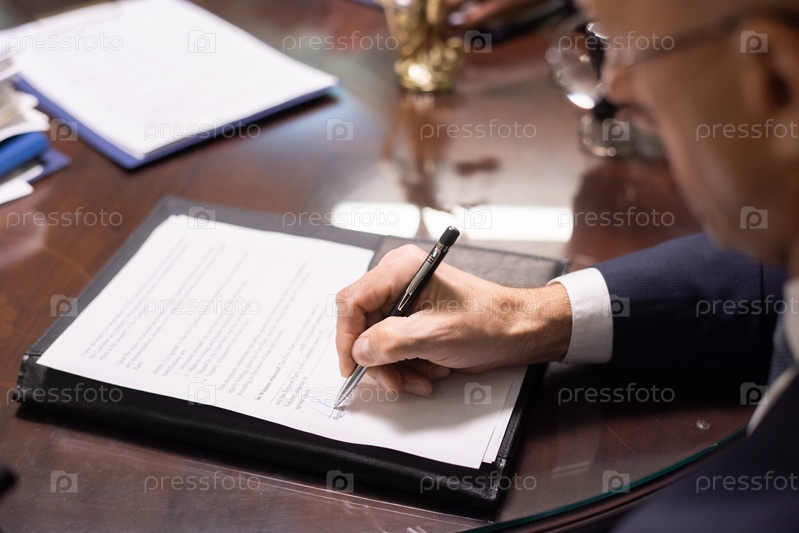 Рука современного юриста или бизнесмена, подписывающего бумагу