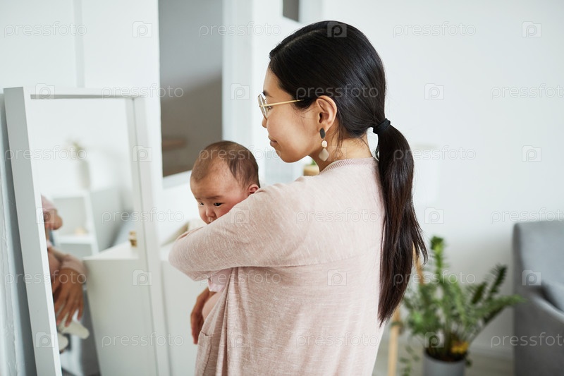 Женщина с ребенком стоит в комнате