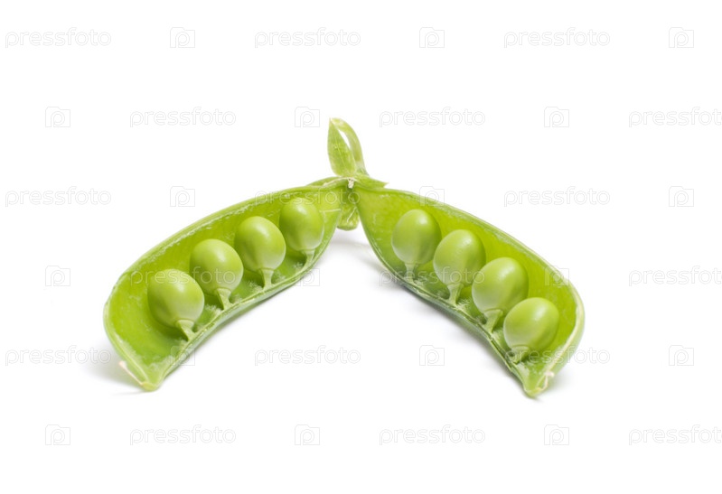 Открытый стручок гороха на белом фоне