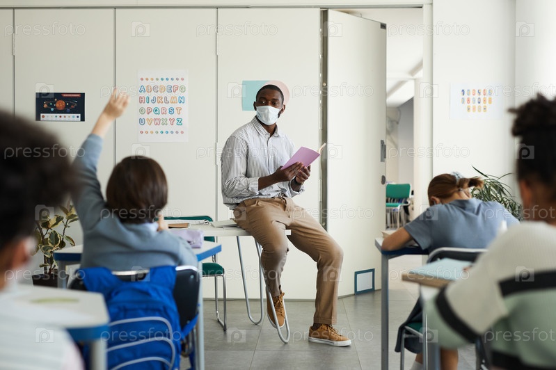 Афроамериканская учительница носит маску в классе