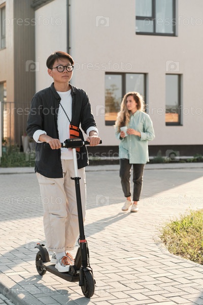 Азиатская женщина, едущая на скутере