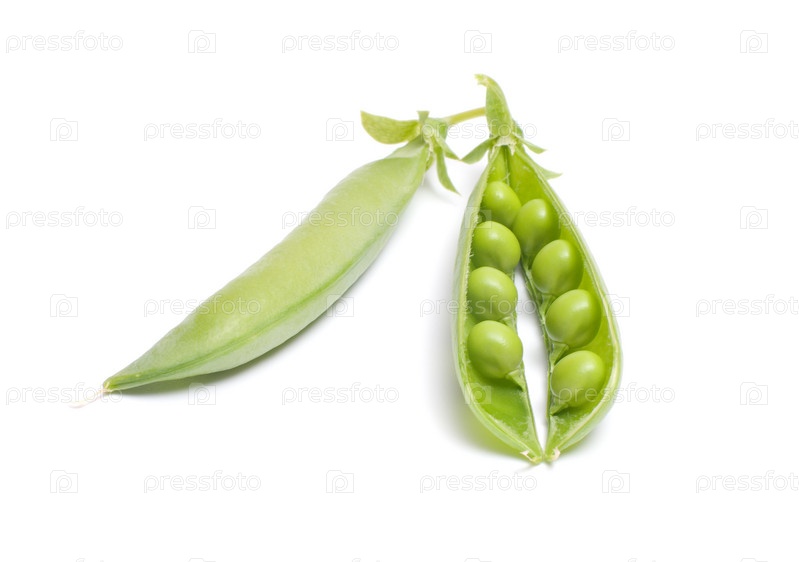 Открытый стручок гороха на белом фоне