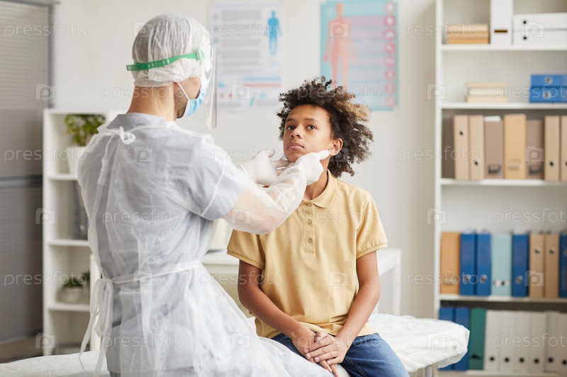 Доктор осматривает афроамериканского мальчика