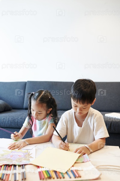 Братья и сестры рисуют карандашами