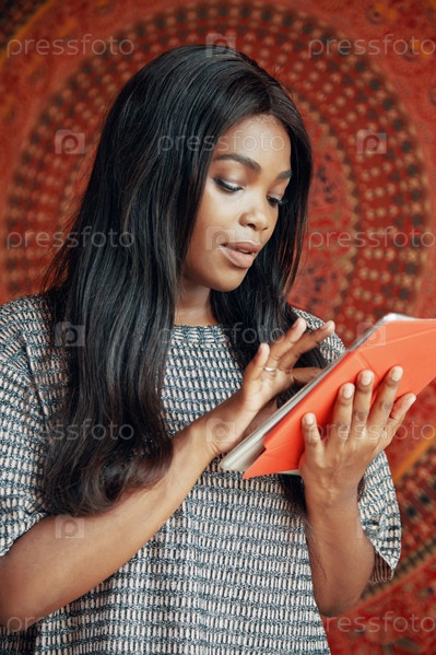 Женщина, использующая приложение на планшетном компьютере