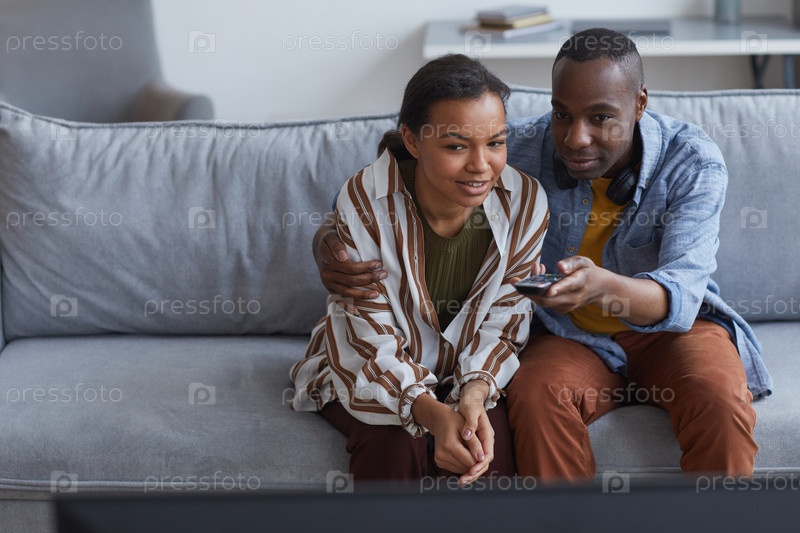 Пара смотрит телевизор дома