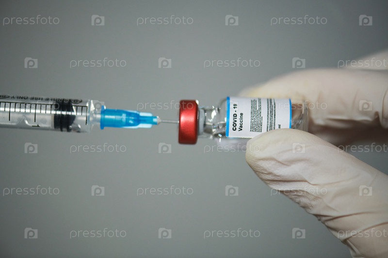 Перчаточные руки современного клинициста или медсестры, держащих шприц и небольшую бутылку с вакциной