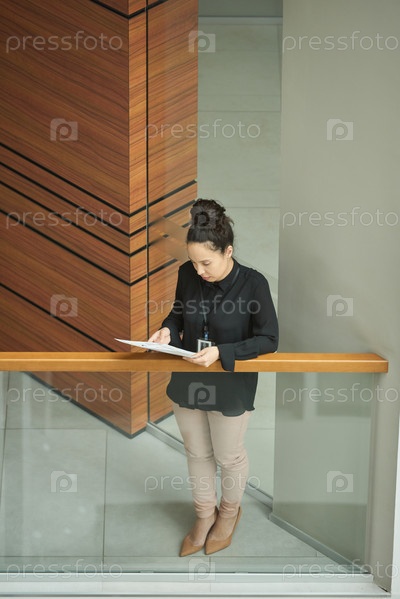 Деловая женщина изучает контракт