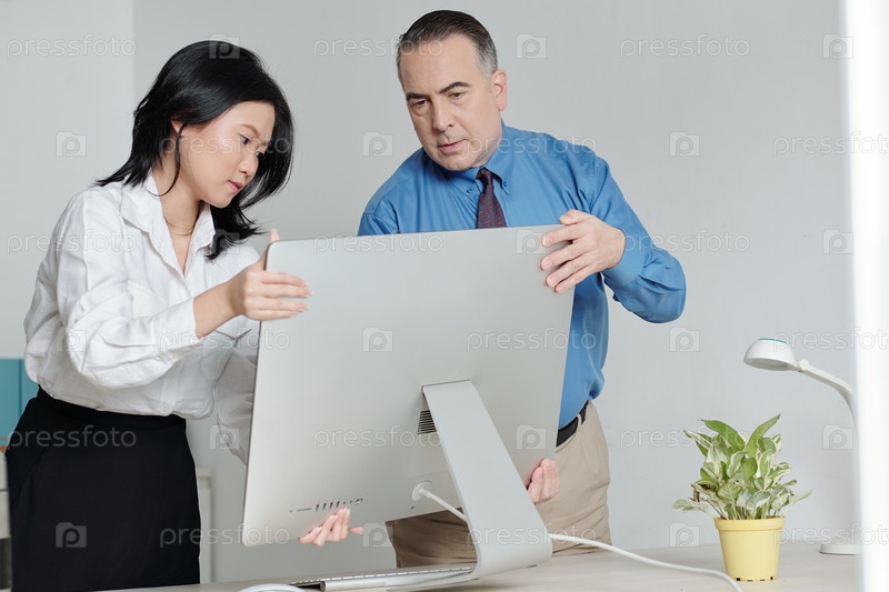 Мужчина помогает новому сотруднику