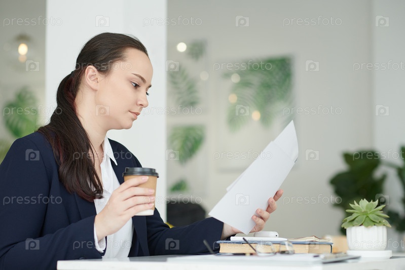 Женщина-предприниматель читает отчет