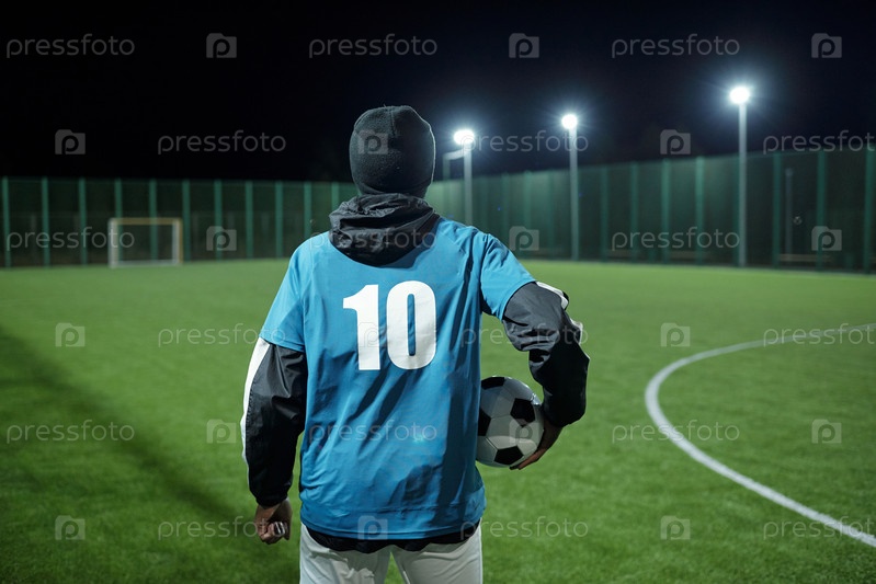 Задний вид современного профессионального футболиста