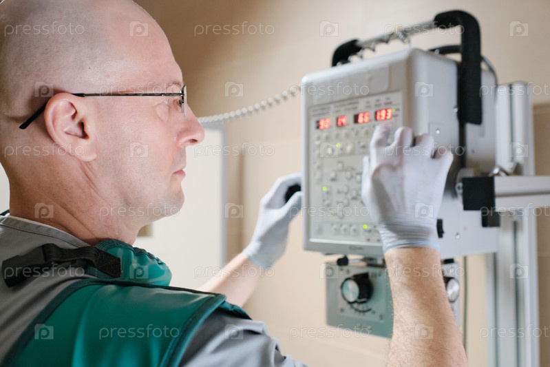 Врач использует рентгеновское оборудование на работе
