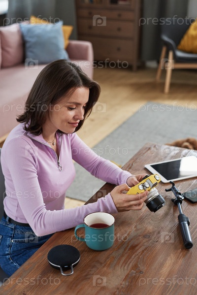 Фотограф просматривает фотографии на экране камеры