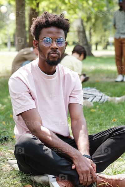 Человек, сидящий на траве в парке