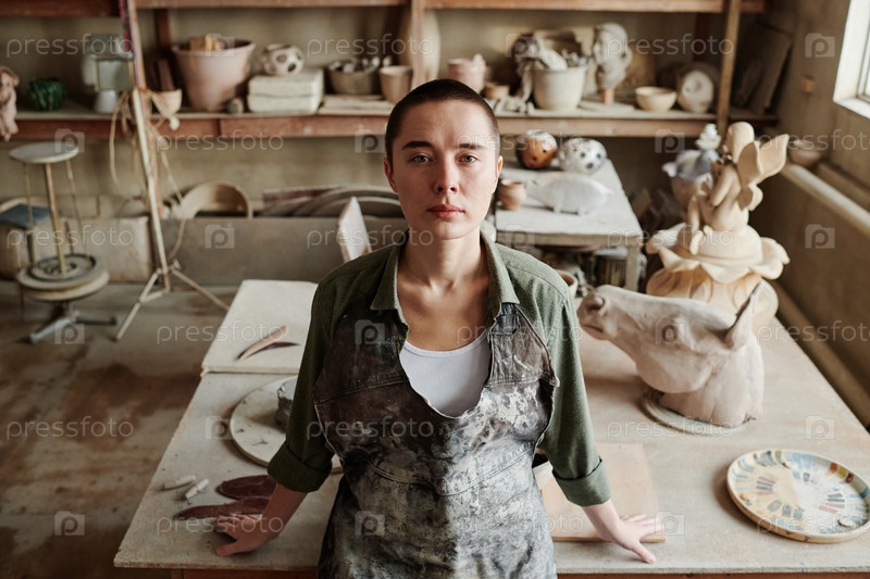 Ремесленница создает керамические вазы в мастерской